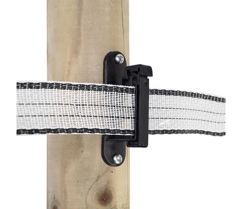 Gallagher steunisolator voor het eenvoudig bevestigen van lint aan houten afrasteringspalen. De tussenisolator is te gebruiken voor schriklint met een breedte van 20 tot 40 mm. De Gallagher steunisolator, ook wel lintisolator genoemd, heeft een erg goede prijs-kwaliteitverhouding. De isolator heeft een handig klemsysteem waardoor het lint goed blijft zitten en zo een langere levensduur heeft.
