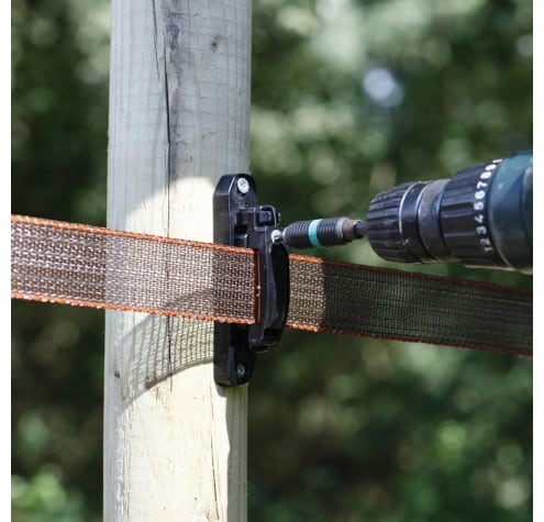 De Gallagher TurboLine tussenisolator, ook wel steunisolator, is een mooi vormgegeven lintisolator voor permanente afrasteringen. Met deze isolator bevestigt u lint tot 40mm op palen in permanente afrasteringen. Het bevestigen van het lint is heel eenvoudig. Met één klik klemt u het tussen 2 vaste rubberen delen. Dit zorgt voor een stabiele bevestiging van het lint en verlengt de levensduur aanmerkelijk. De meegeleverde schroef kan gebruikt worden als extra borging. De isolator is Easy 2 Use en heeft een goede prijs-kwaliteitverhouding. De garantie op de TurboLine paarden isolator is 10 jaar.