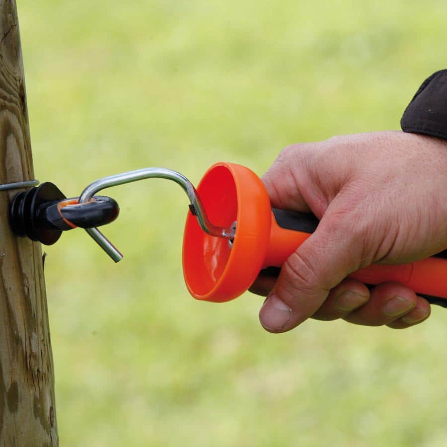 Robuuste poortgreep met zwart rubberen profiel voor optimale grip en goede zichtbaarheid. Geschikt voor cord of draad.