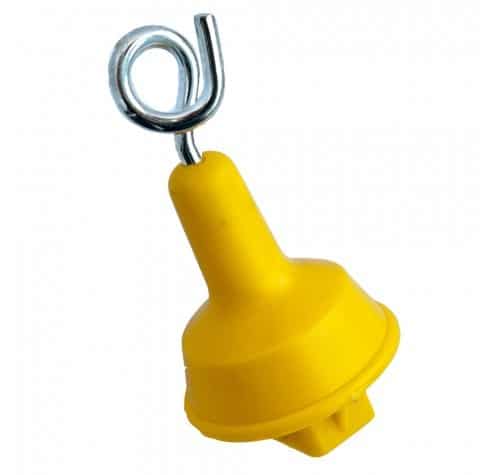Slagvaste krulisolator met metalen krul t.b.v. veerstalen palen. De kopisolatoren zijn gemakkelijk te gebruiken en zijn bestand tegen hoge spanning.