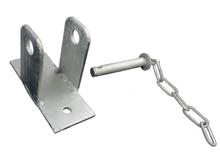 Sluiting met pen aan ketting om stalen landhekken eenvoudig te vergrendelen.