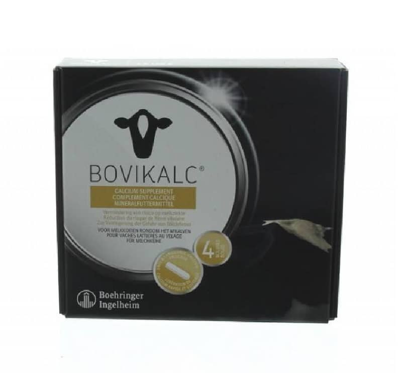 Bovikalc bolus, calciumsupplement voor rundvee in een bolusvorm. Zeer veilig in gebruik, unieke samenstelling en toedieningswijze. Door de bijzondere samenstelling van de Bovikalc calciumbolus komt de calcium zowel onmiddellijk als ook geleidelijk beschikbaar. Bovikalc wordt zowel preventief als ter aanvulling van een calcium infuus aangeraden.
