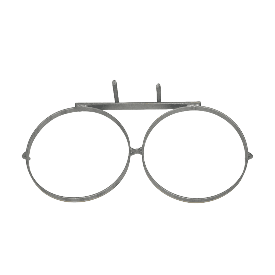 De emmerbeugel kan eenvoudig dmv twee pennen gemonteerd worden in het kalverhek front. De afmeting van de ring is geschikt voor emmers en voerbakjes.