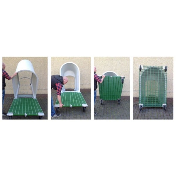 – Door de soepel draaiende wielen is het hok goed verplaatsbaar, met of zonder kalf.