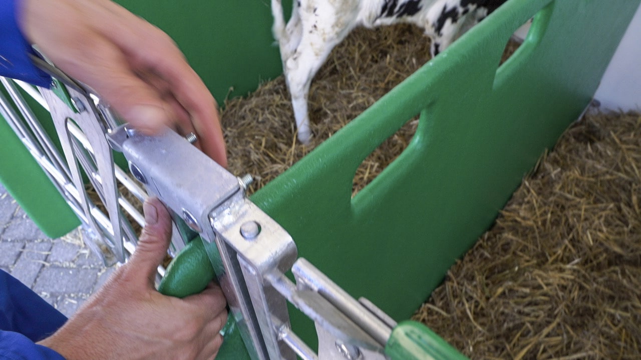 – Door de beweegbare klep aan de voorzijde van het hok, is er een goed overzicht op de kalveren en kan de veehouder rechtop staan