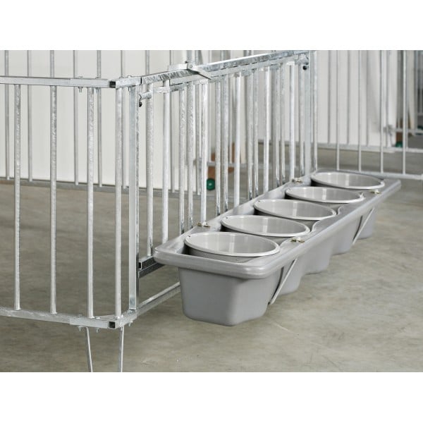 Kunststof voedertrog van hoogwaardig polyethyleen, waarin u zowel melk als krachtvoer kunt verstrekken. Door de doordachte vorm, staan de emmers stevig, en blijft de trog schoon voor het krachtvoer. Geschikt voor CalfOTel XL-5 of XL-10. In de voertrog kunt u heel eenvoudig 5 emmers plaatsen.