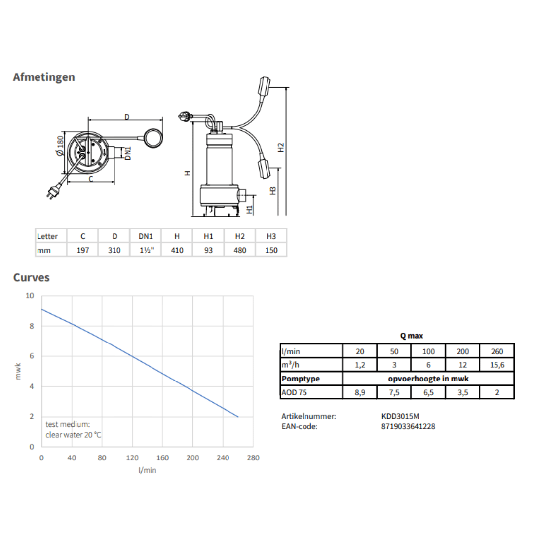 De KIN dompelpomp AOD 75A is een krachtige en robuuste vuilwater dompelpomp, ontworpen voor zowel particuliere als industriële toepassingen. Deze pomp biedt een uitstekende oplossing voor het efficiënt verpompen van vuil water dankzij zijn duurzame constructie en geavanceerde technische kenmerken.