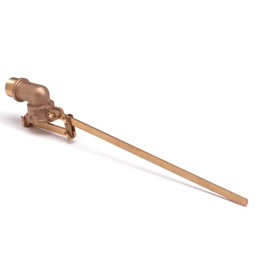 Messing vlotterarm met een buitendraads aansluiting. Door het gebruik van een vlotter kan het waterniveau in de drinkbak op een constant niveau worden gehouden. De werkdruk van de vlotter is 1 tot 6 bar en de maximale temperatuur is 90°C.