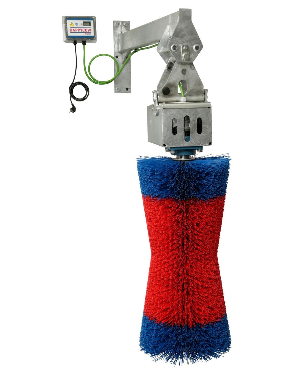 Doordat de borstel bij elke opstart automatisch de andere richting uitdraait kunnen de koeien de haren niet platduwen. Bij overdadige weerstand zorgt de blokkeerbeveiliging ervoor dat de borstel stopt en automatisch de andere kant gaat uitdraaien. De Happy Cow Swing-serie wordt automatisch geactiveerd wanneer de borstel wordt aangeraakt. Alle stalen onderdelen van de Happy Cow borstel zijn thermisch verzinkt.