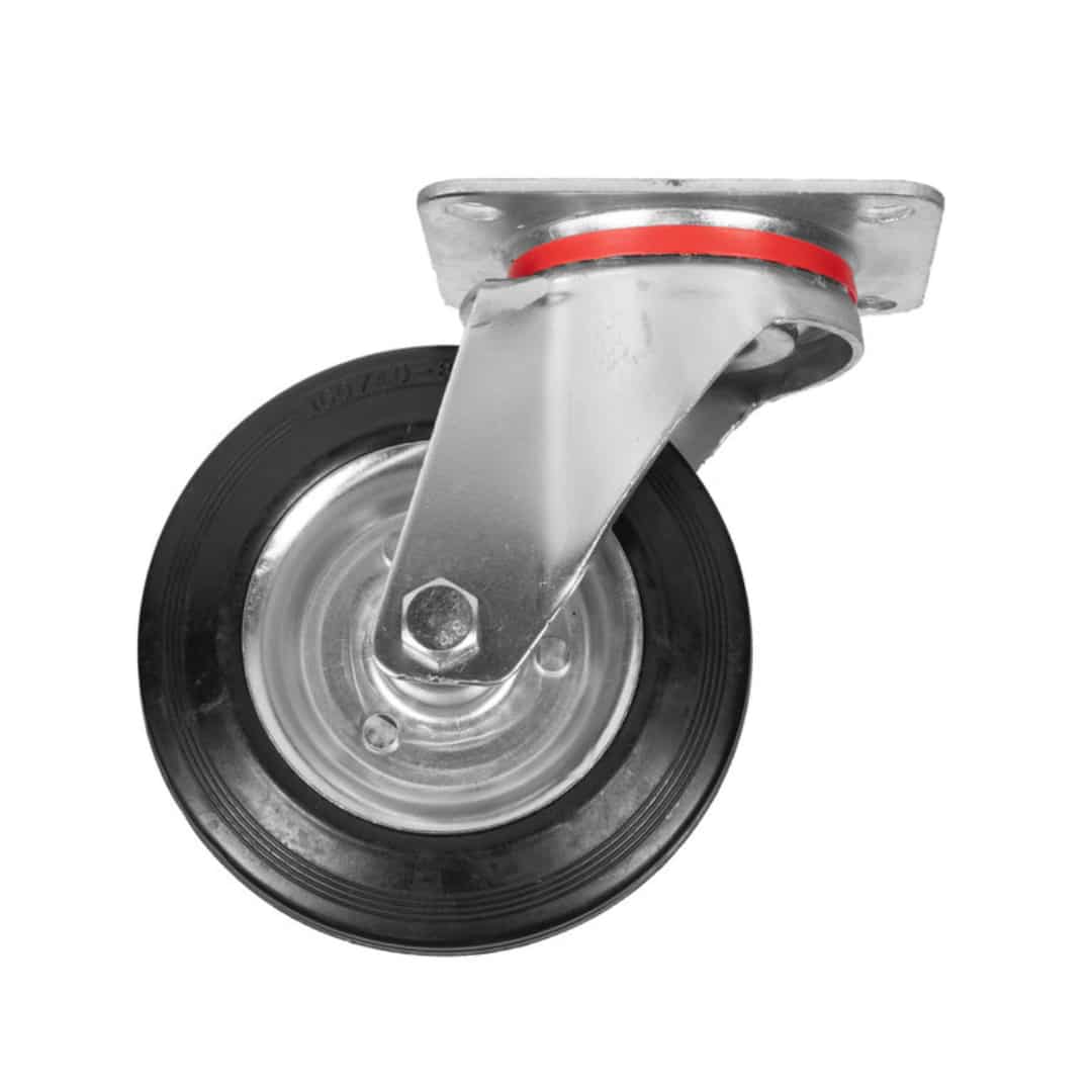Dit hoogwaardige rubberen zwenkwiel 200mm met rollager is ideaal voor gebruik op oneffen vloeren, zoals klinkers of beschadigde betonoppervlakken. Dankzij de massieve rubberband (80° Shore A) biedt dit zwenkwiel uitstekende rijeigenschappen, lage rolweerstand en goede schokabsorptie.