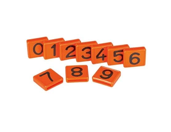 Kokernummer/schuifnummer om uw dier eenvoudig te herkennen. De schuifnummers zijn eenvoudig aan te brengen aan de nekriem. Het kokernummer is oranje met duidelijk zwarte afleesbare cijfers. De nummers zijn zo ontworpen dat ze niet verschuiven over de halsband. Geschikt voor halsbanden tot 40 mm breed.