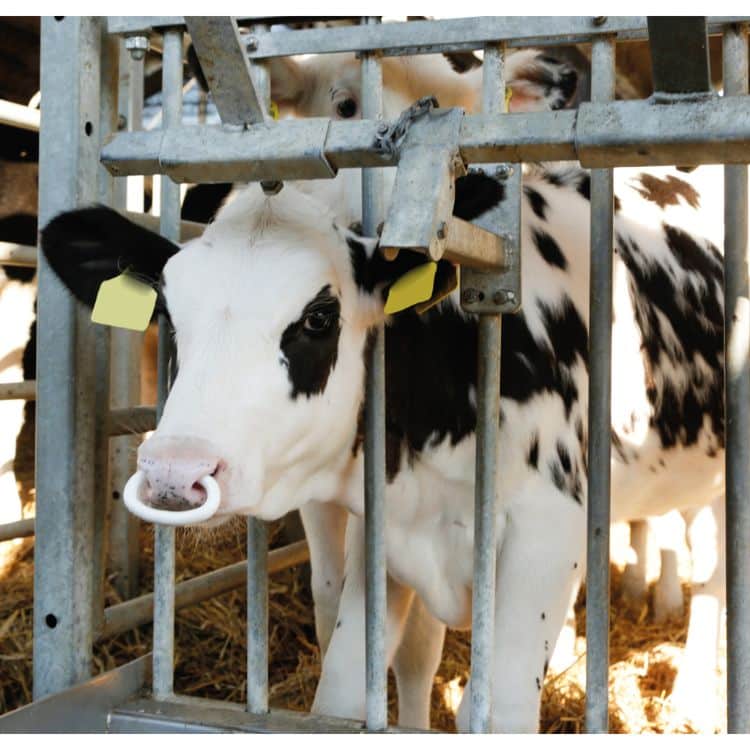 De nieuwe innovatieve anti-drinkbeugel SuckStop Müller transparant zorgt ervoor dat kalveren niet ongewenst bij andere kalveren kunnen drinken. De anti-drinkbeugel kan makkelijk worden ingebracht en weer worden verwijderd. Doordat de antizuigring licht elastisch is beschadigt het neustussenschot niet. Deze innovatieve en nieuwe antizuigring corrigeert het zuigende dier zelf, zonder andere dieren te irriteren of af te schrikken. Een anti-drinkbeugel kan ook ingezet worden bij kalveren die ‘zuigen’ bij andere kalveren. Ze kunnen hierdoor blijvende schade aanrichten aan het nog niet ontwikkelde uier van het kalf.
