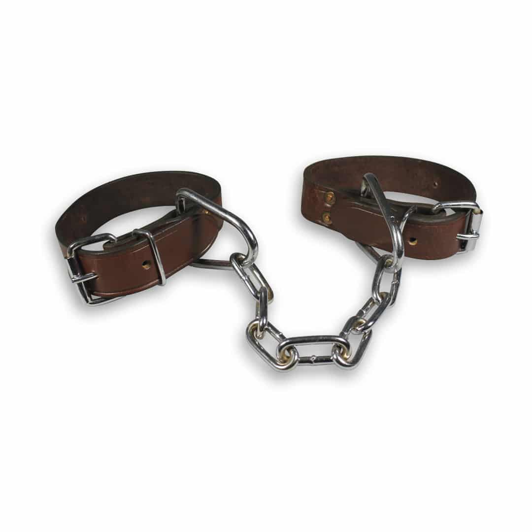 Deze pootriem leer+ketting / koekluister/ anti-spreidband, speciaal ontwikkeld voor koeien ter ondersteuning na uitglijden, na het afkalven of om letsel te voorkomen. De anti-spagaatband is gemaakt van leer leer met een ketting ertussen, daarnaast beschikt de pootriem over een rolgesp. Met de gesp kan de diameter van de pootband worden aangepast. De pootband heeft een breedte van 40mm.
