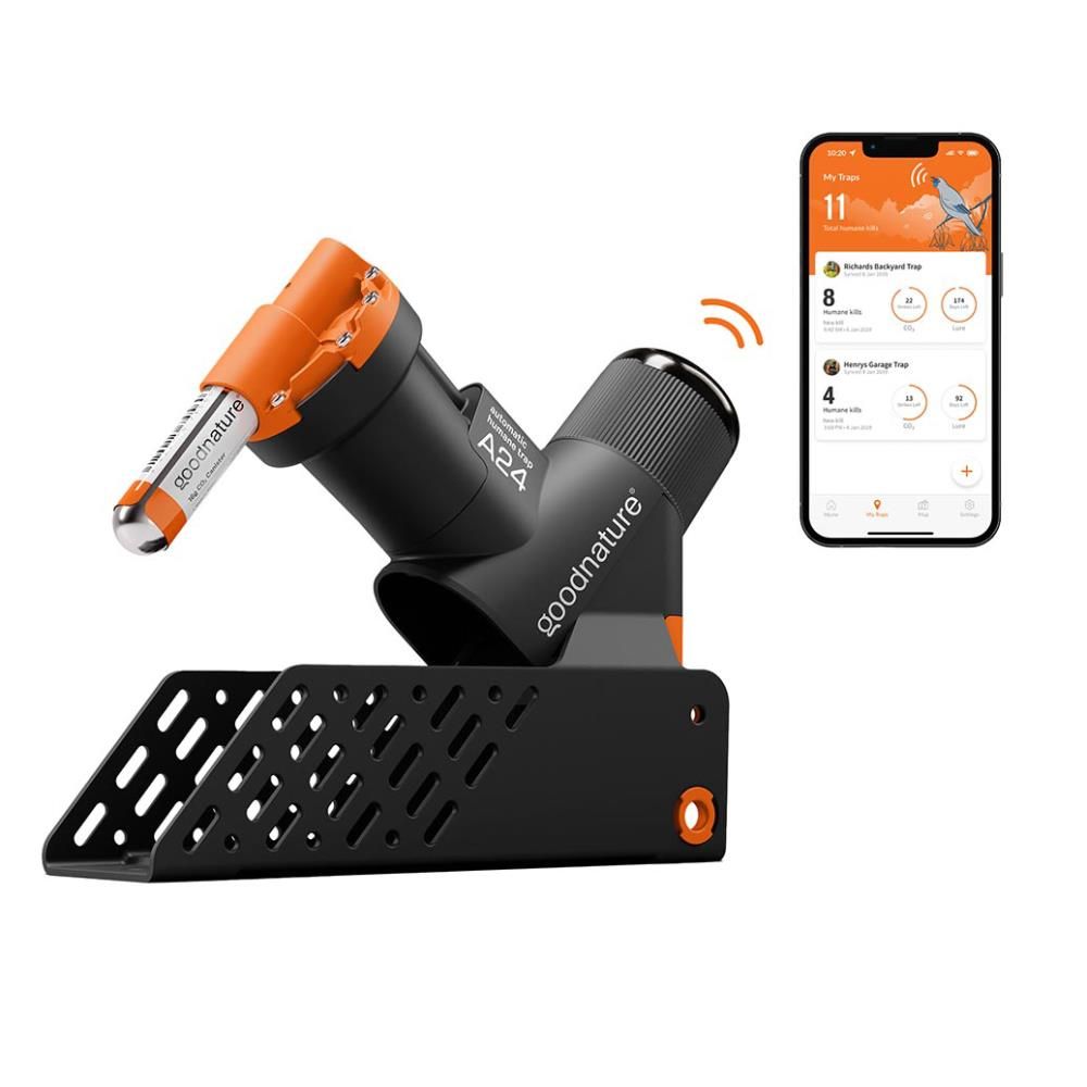 De Goodnature A24-val doodt automatisch maximaal 24 ratten of muizen met slechts één CO2-patroon.