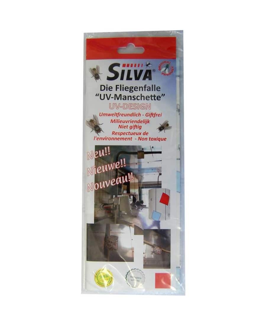 De Silva ‘UV Manchet’ vliegenklever is een zeer effectieve vliegenval voor het gifvrij vangen van vliegen, muggen en andere insecten in alle ruimtes. De UV kleuren op de Silva vliegenklever zorgen voor een optimale aantrekkingskracht op vliegen. De vliegen blijven vast zitten op de vliegenval, met 1 vel kunt u tot 1500 vliegen vangen. De Silva kleefvellen zijn zeer geschikt om in huis, melklokaal, stal of om melkleidingen op te hangen.