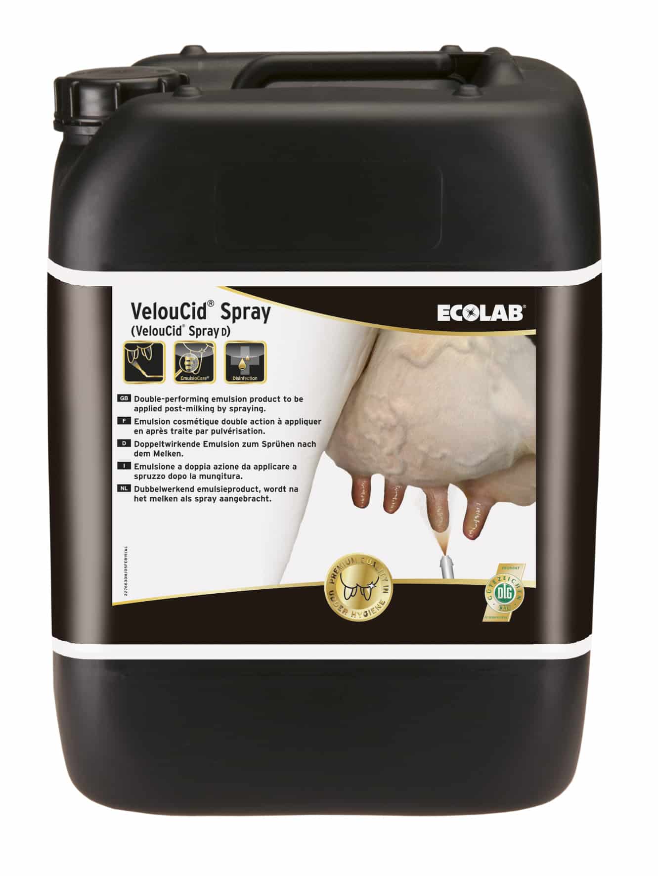 De Ecolab Veloucid spray P3 is een hoogwaardige desinfecterende spray die een zichtbare, beschermende filmlaag op de spenen vormt, waardoor deze optimaal beschermd zijn tussen melkbeurten door. Dankzij de gestabiliseerde viscositeit blijft de spray uitstekend hechten bij alle temperaturen, zonder te druppelen, waardoor het product het hele jaar door betrouwbaar te gebruiken is.