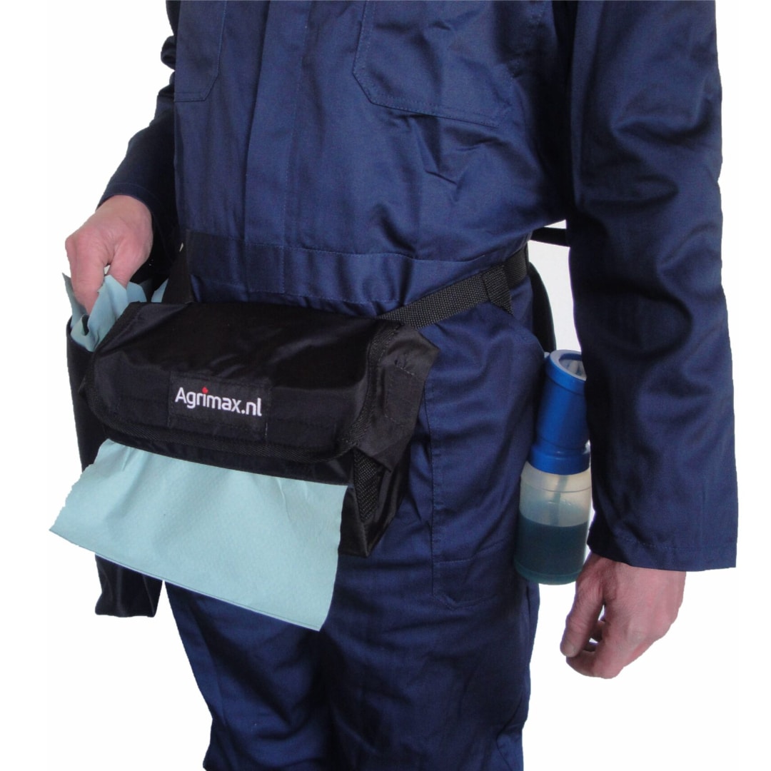 Met de Agrimax heuptas voor uierpapier heb jij altijd je uierdoekjes bij de hand. Deze slimme heuptas is een echte tijdbespaarder om efficiënt te werken in de melkstal.