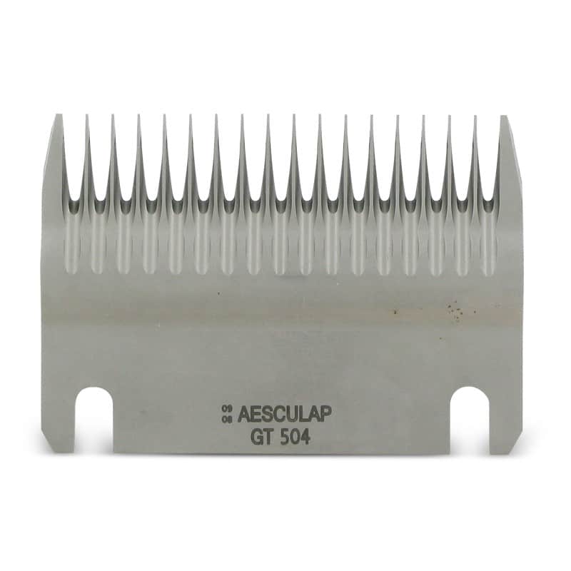 Ondermes GT504 met 18 tanden. Aesculap veescheermessen zijn van zeer hoogwaardige kwaliteit en kunnen daardoor vele malen worden geslepen. Geschikt voor het scheren van schapen en runderen.